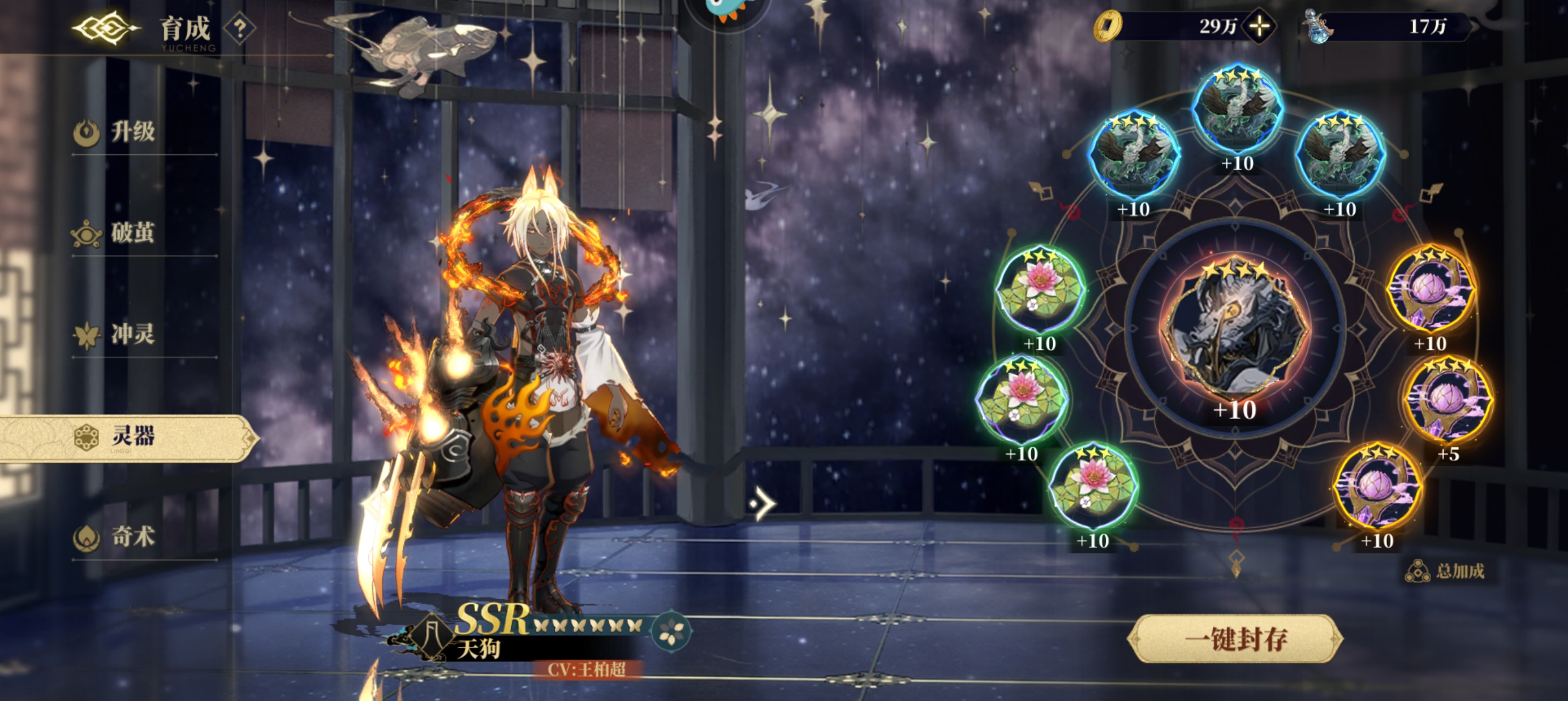 造化副本毕业后,就要考虑培养灵器了。优先培养输出c位的灵器。