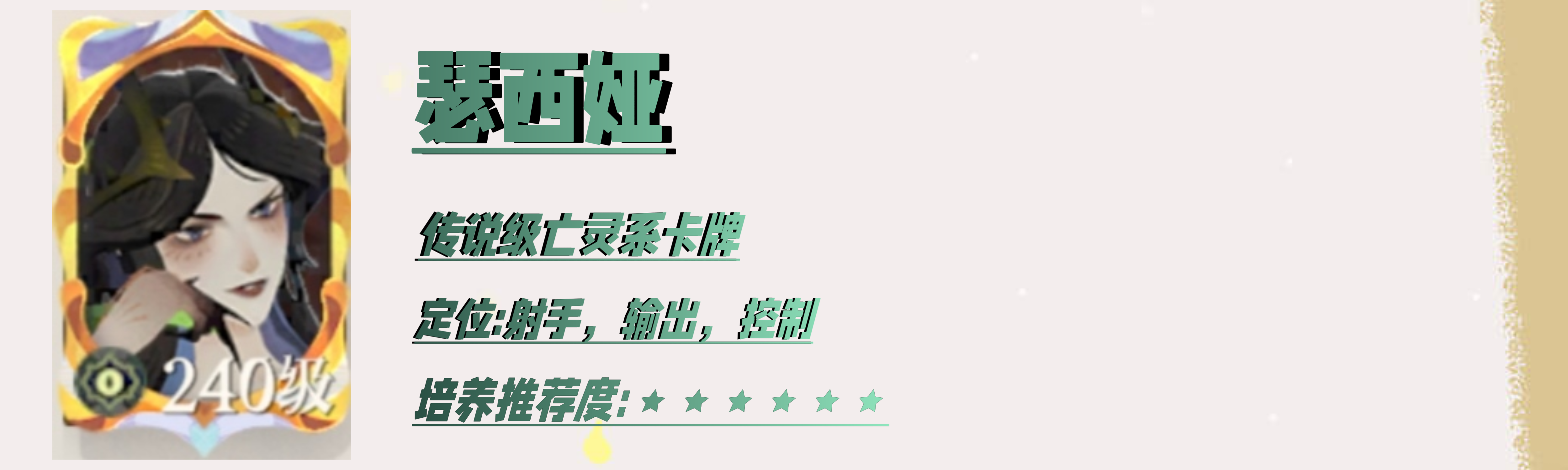 所以,今天的主角自然就是瑟西娅了,就按我们老规矩,和大家深度剖析一下荆棘这张女王卡,技能、养成与配置。