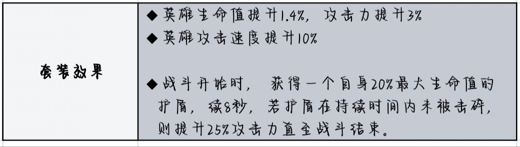 战斗开始时,布阵在己方最后排的1名友方英雄获得80/100点攻击速度提升,持续15/20秒。效果持续期间,该英雄免疫控制效果。