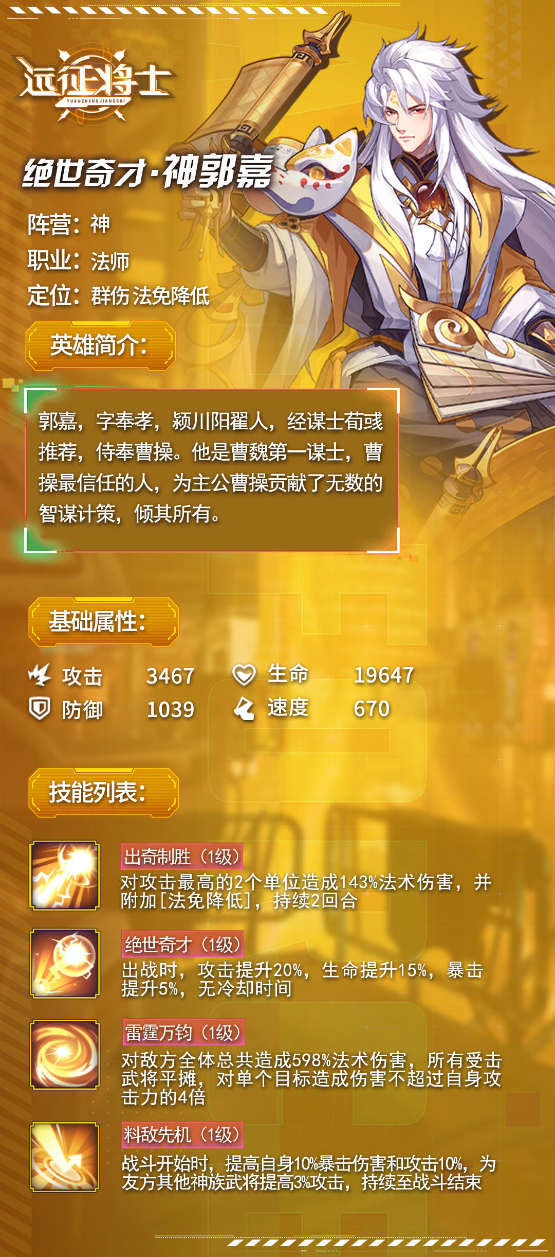 今天给主公带来的是您的“奇佐”武将——神·郭嘉的资料哦~