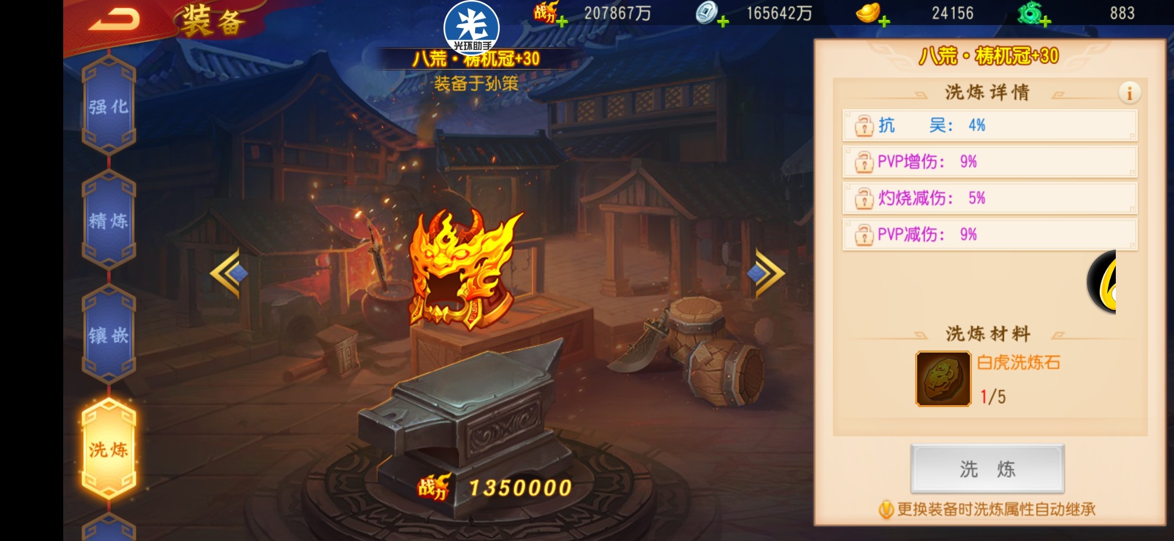 这个时候有些玩家会说。你说的简单。实际没那么简单。这点我同意。但是我是从长远考虑。提供一个洗炼方法给各位玩家参考一下。尽量把资源利用到最大化。因为通过这段时间观察。有些玩家拼命的一直洗主输出的一个装备。在用掉大量洗炼石以后还是无法得到好的属性。或者说得到了一些好的属性。还想精益求精。又重新洗。然后又回到解放前。无行中浪费大量洗炼石头。所以不如先用少量的洗炼石头把整个阵容武将的装备优先洗出几个橙属性。特别是PVP减伤。再去集中洗炼石头洗炼主输出将的装备。无后顾之忧。