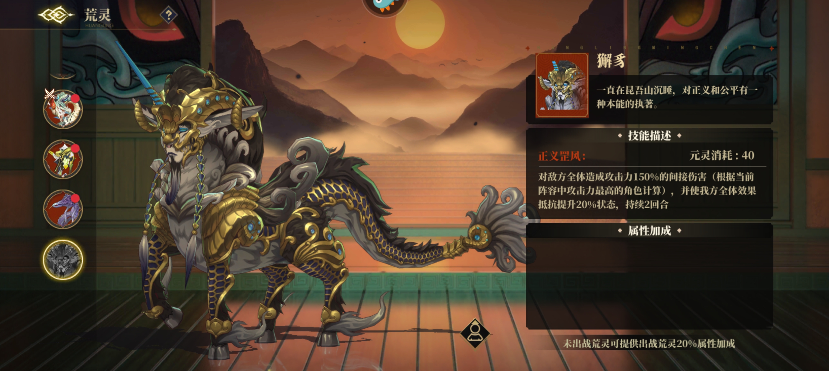⑥【獬豸】抵抗神宠,可以抵御敌人的减益效果,但是目前版本阶段也并不太需要抵抗效果,后期估计会起飞。