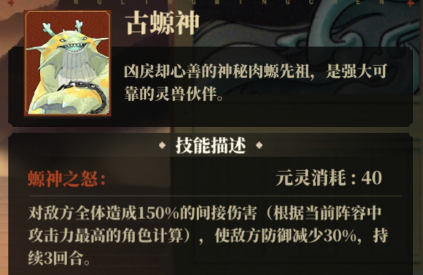 ①【古螈神】开荒神器,全体伤害+减少防御,很适合打历练和前期开荒。