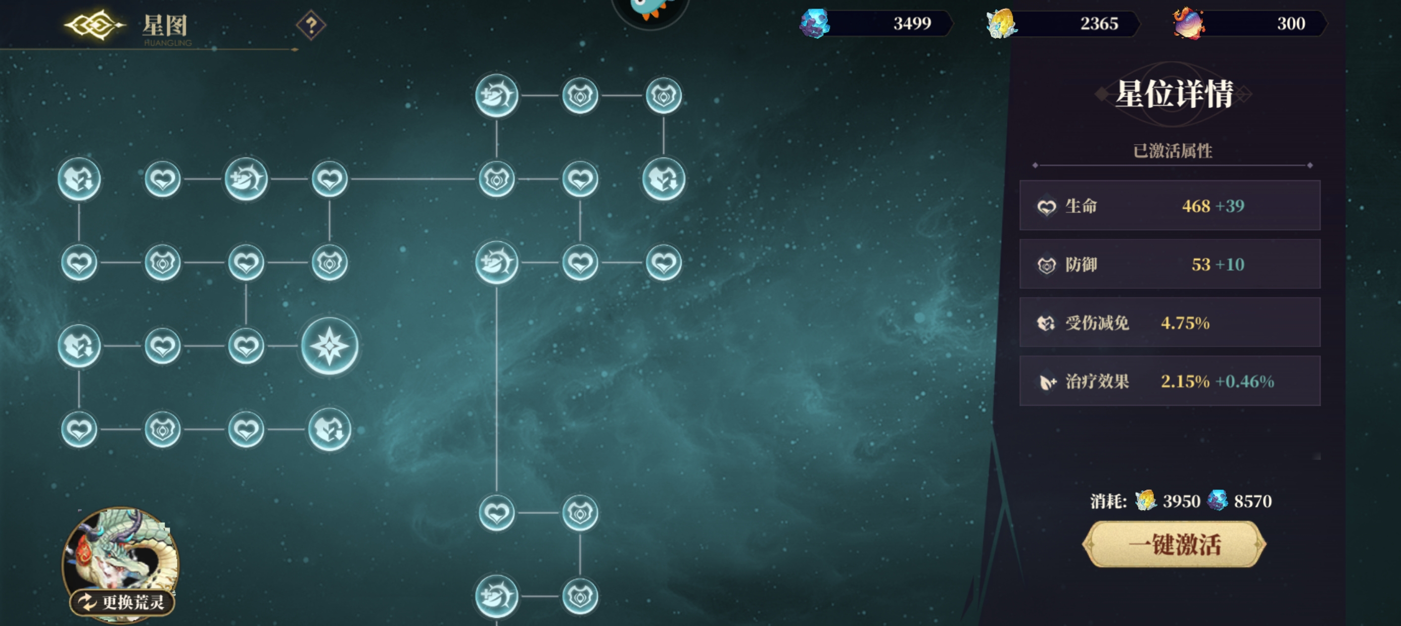 然后优先激活主战的【荒灵】星图属性,就是自己最常用的那个。