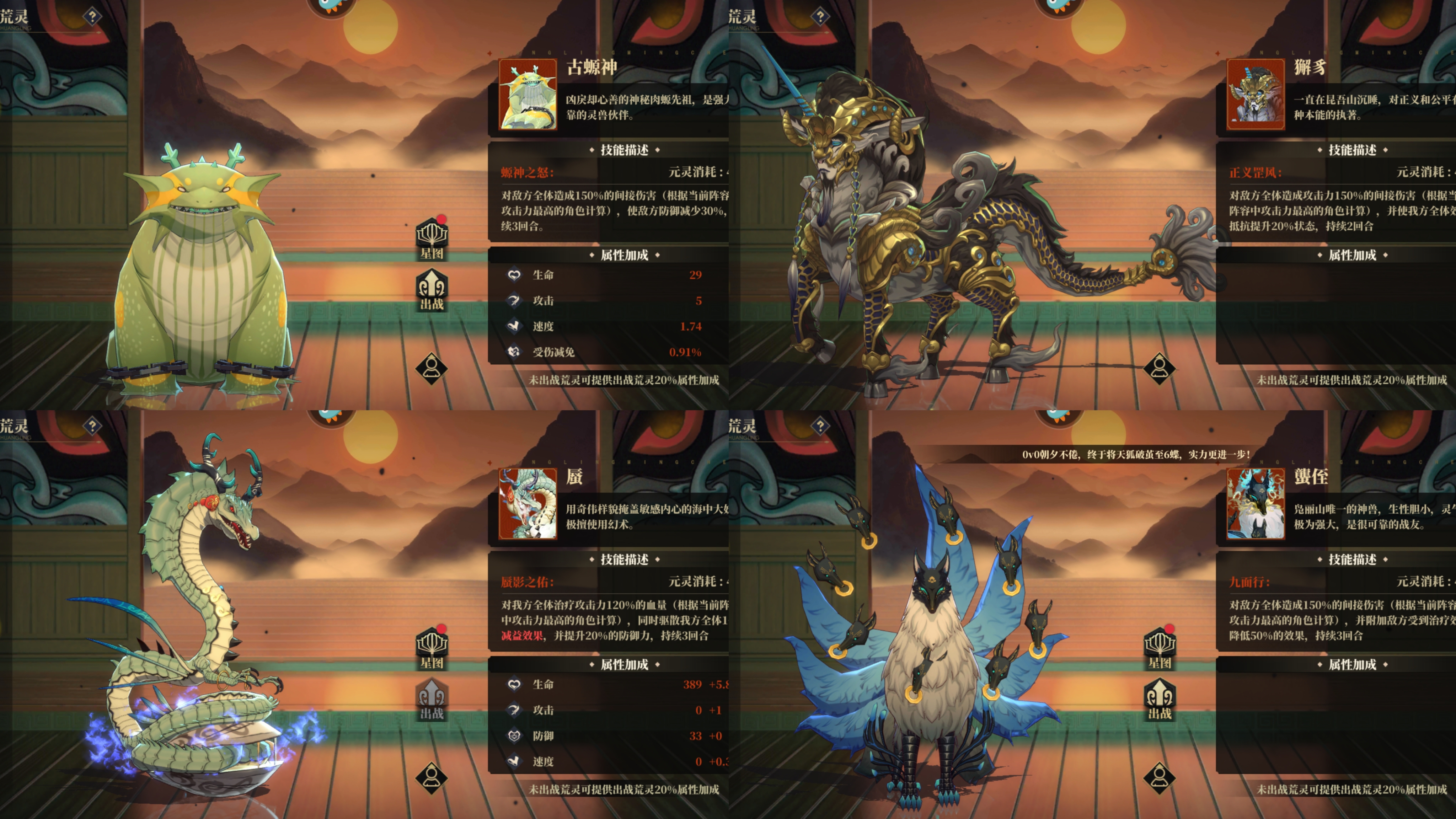 这六大荒灵按照顺序根据完成主线章节依次解锁,每个荒灵的技能都不同。