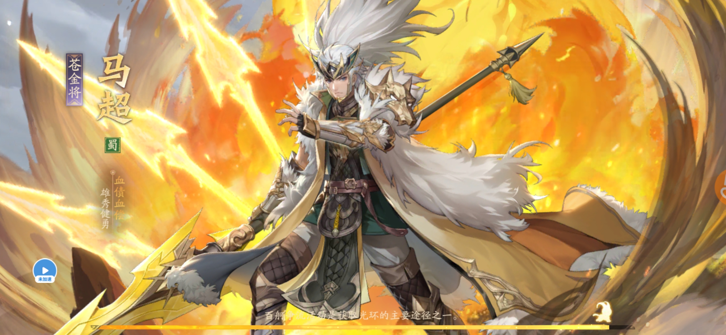 马超开场时立即对敌方全体武将施加【苍御流血】,续2回合。