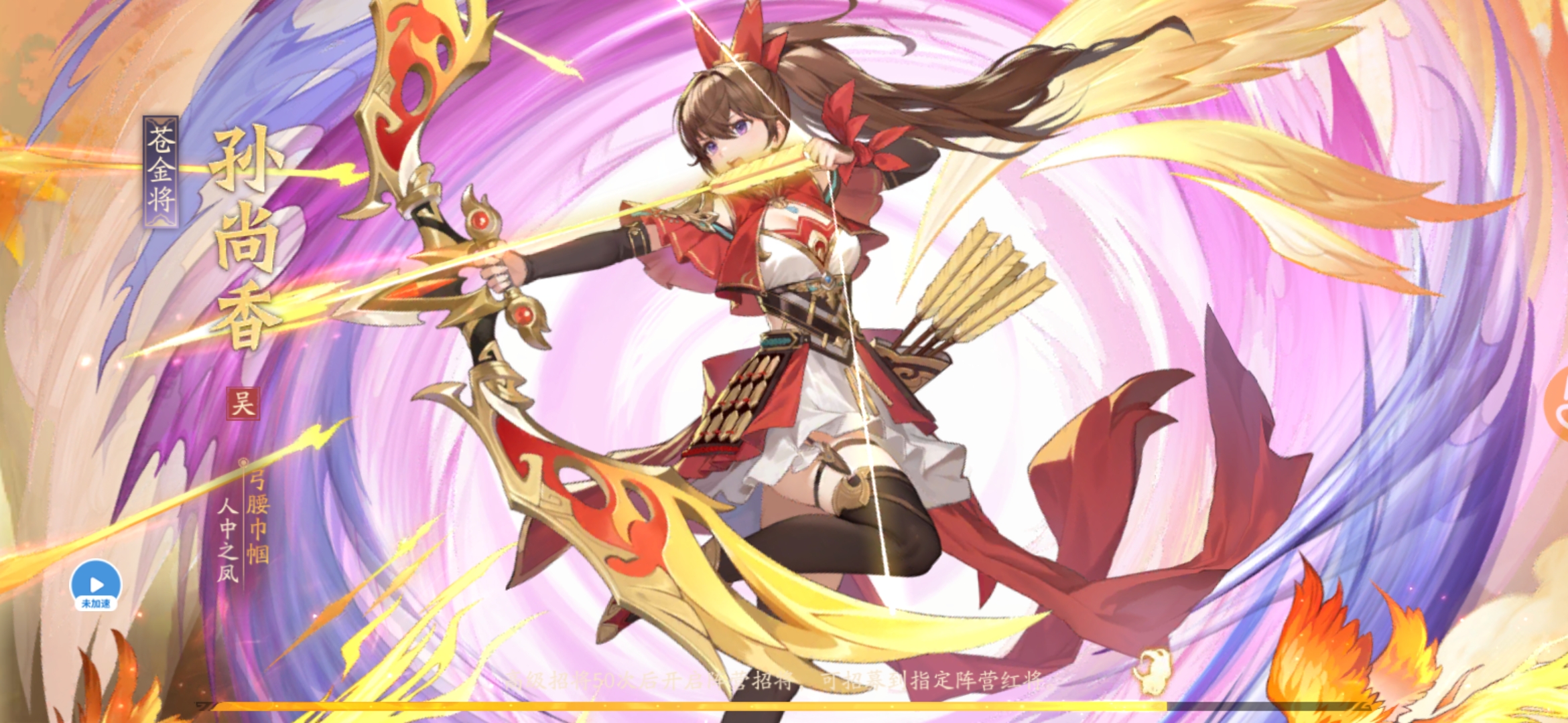 孙尚香释放普攻时,使自身所在列武将获得10%苍御闪避率,持续2回合。