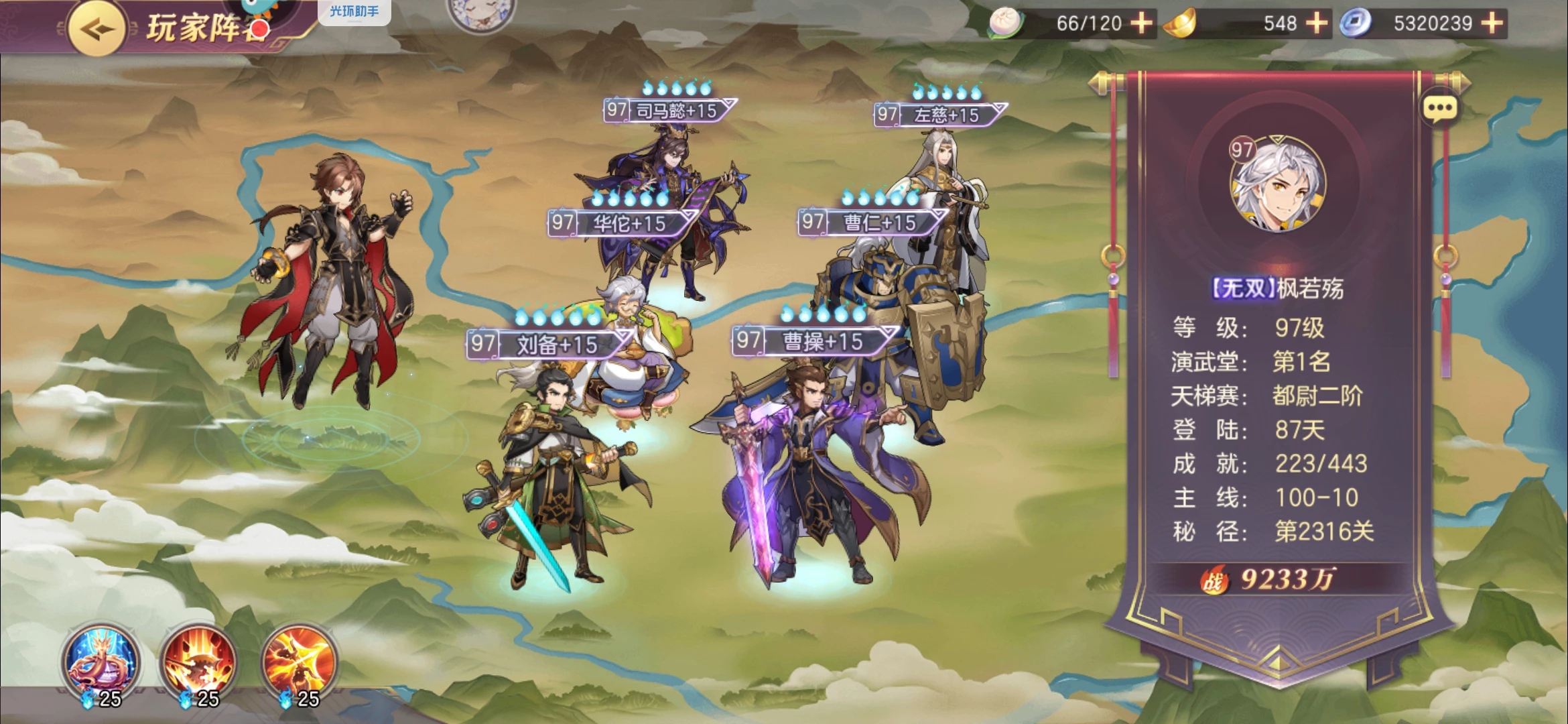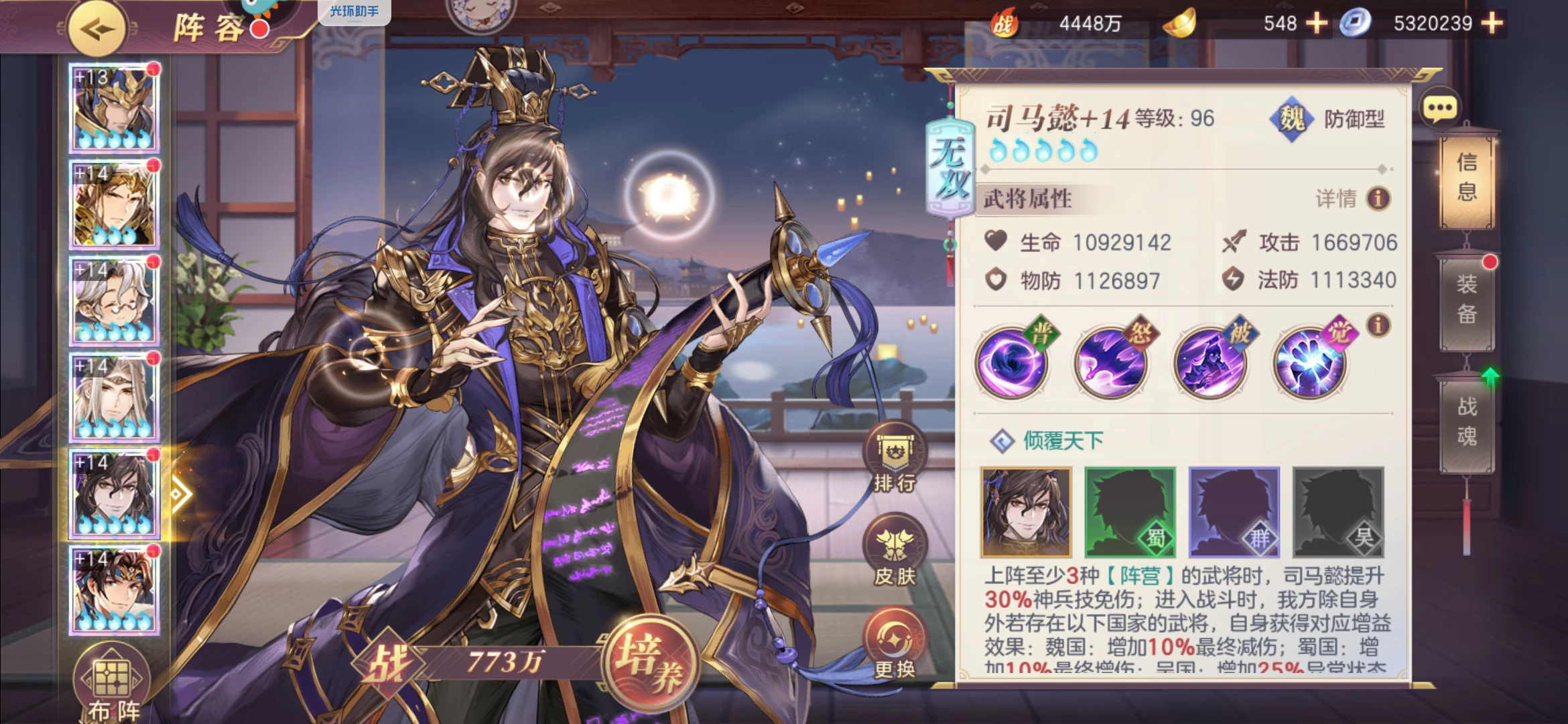 很多新手玩家兴冲冲的新区玩天象最后却打的抱头痛哭。这里主要是因为练度问题,换而言之就是武将的星级与将魂录等过低,无法满足天象队起步的最低要求。尽管天象与蜀突一样都有不错的前期爆发能力,但是蜀突拥有马超这个开局启动器,而天象想要前期启动就必须要非常高的练度作为支撑。