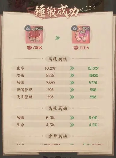 锤锻后,新装备保留原本的装备等级、高级属性词条和珍稀属性词条。