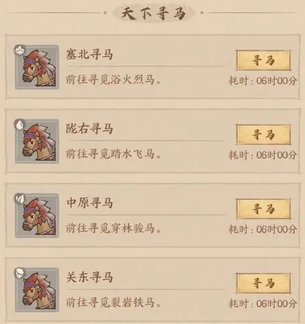【座驾系统】大人可选择任意方向前往寻马,每个地点都有适合对应僚属职业的良马。