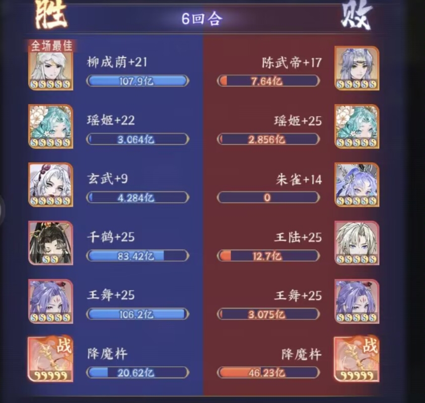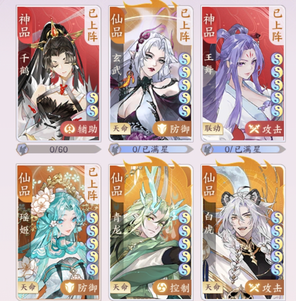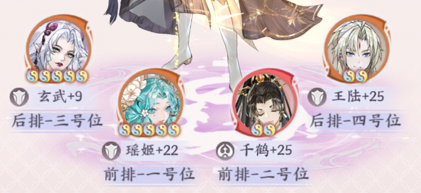 解析:王舞和千鹤是绝配,又肉又有输出。千鹤+瑶姬解各种负面效果,让对面需要叠负面打伤害的打不出伤害,比如应龙、朱雀都可以克制。千鹤最好是星级高点,比较稳定。最后搭配玄武的原因是保命用,想越战就必须带玄武,防止被秒,同战力也看看对面的极限输出,也得配个玄武限伤,玄武可以不用高星,主要是限伤作用。