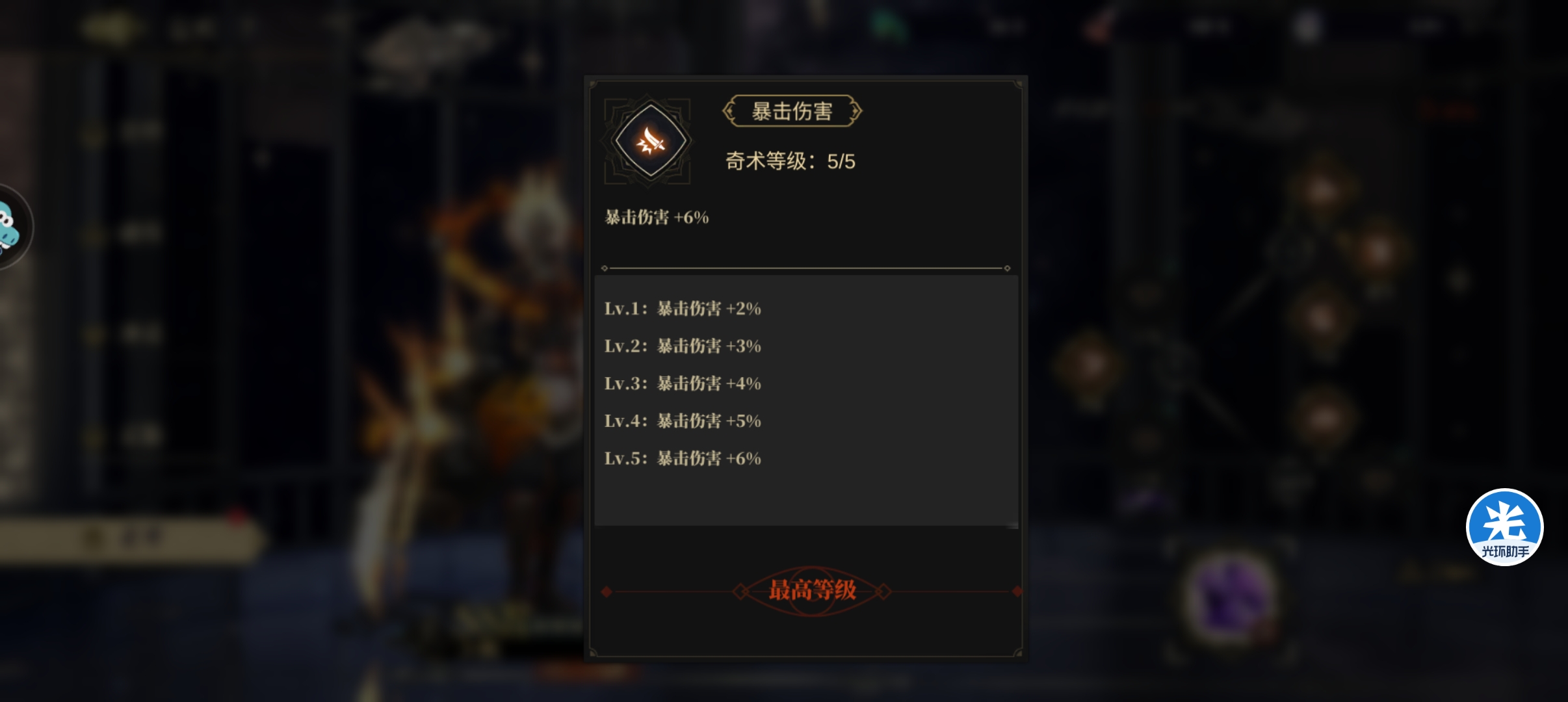 在我们【奇术】资源不多的情况下,我们可以优先升级自己需要的核心属性。