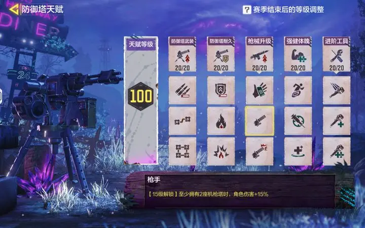 防御塔先买一个机枪,后面先升出来俩蓝色的烈焰,再升机枪