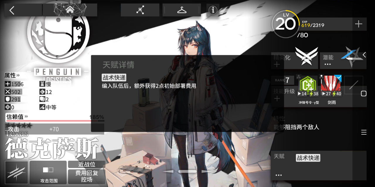 德克萨斯是清道夫的上位。我们看到,其实清道夫和德狗子攻击力和防御力是差不多的。不过德狗子天赋好,技能更是bug,所以,我哭了(德狗子是小号的)