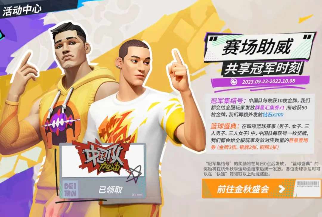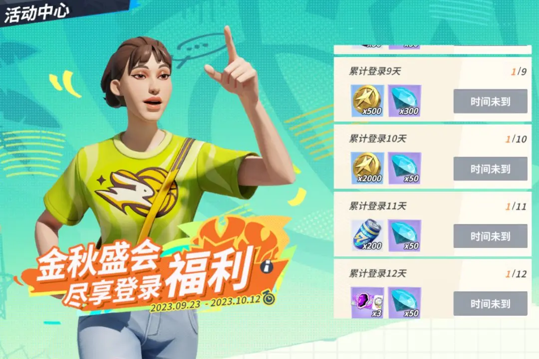 派对陪大家度过的第一个中秋节+国庆节,最最宠粉的开发组怎么可能没点表示呢?我们给大家准备了多重福利活动:群星汇集券×28(根据亚运赛程结果还会继续增加)、明星天赋卡×24、钻石×1200、免费时装等丰厚奖励,统统等你动动手指带走!时尚和强度你可以全都要!