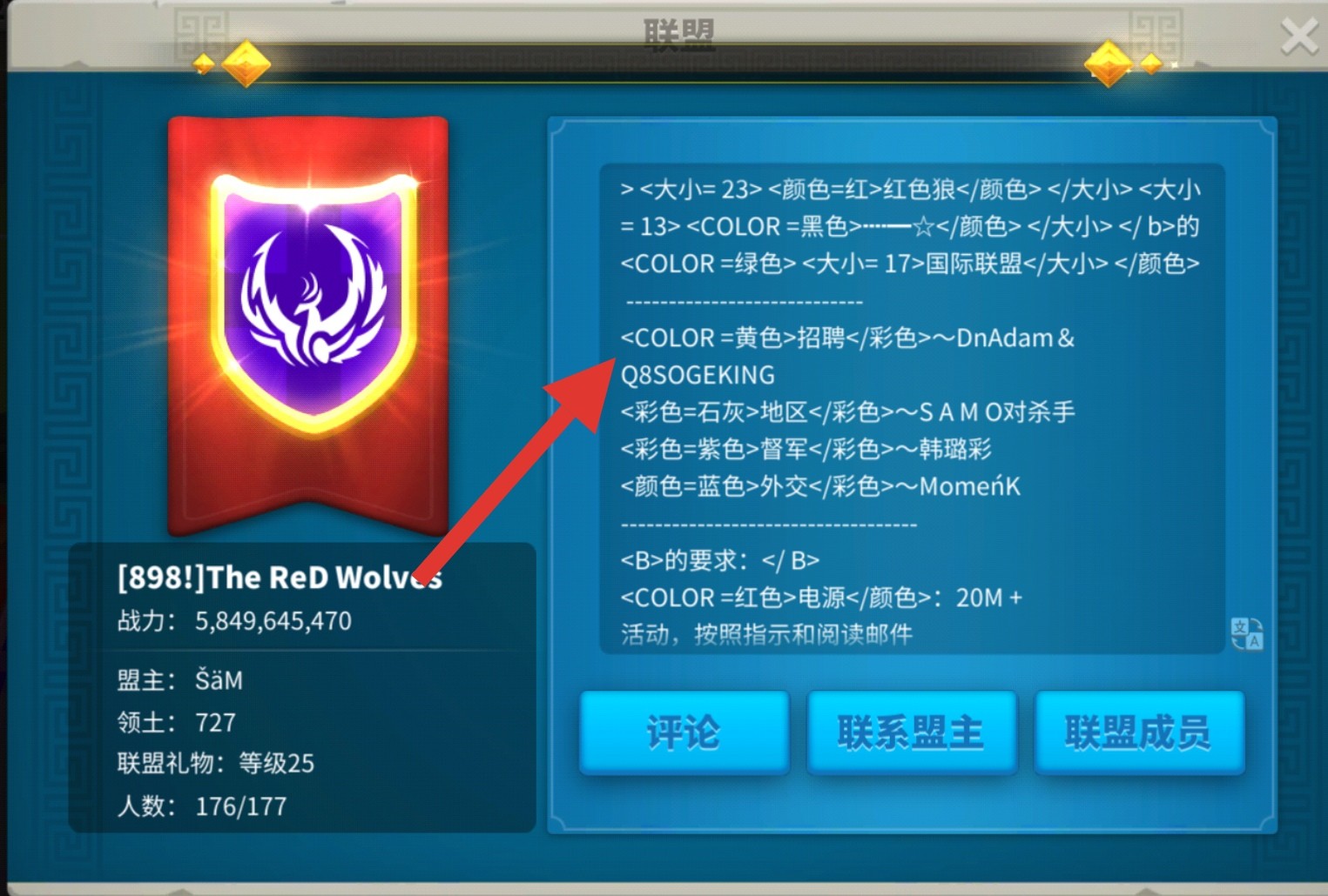 我们先从加联盟开始说吧,在选择联盟加入时,我们必然是希望加入更强的联盟。但是强大的联盟对招募人员一般都有所要求,我们可以通过联盟介绍面板查看联盟要求。