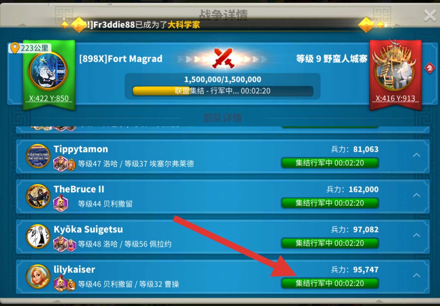 当你点击加入集结后,你的部队会前往发起集结城市,由于不同盟友城市的位置不同,往往会出现距离过远、行军时间过长的情况。
