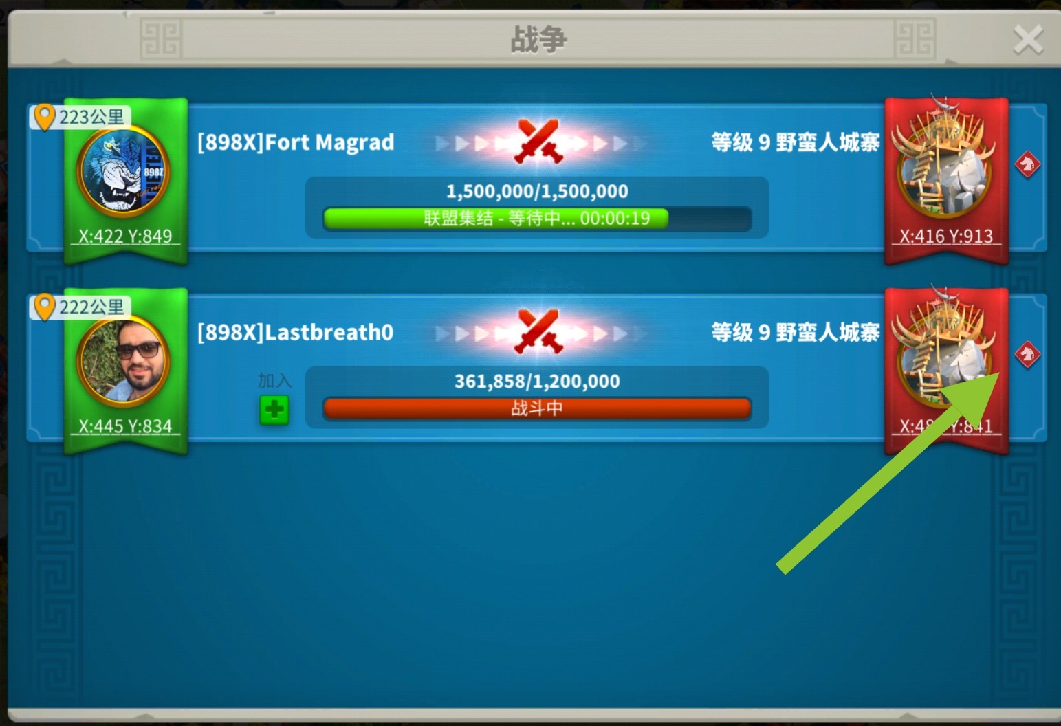 战争面板在日常使用时主要显示盟友对野蛮人城寨或特殊目标发起的集结进攻,那么在参加集结时我们要注意些什么呢?