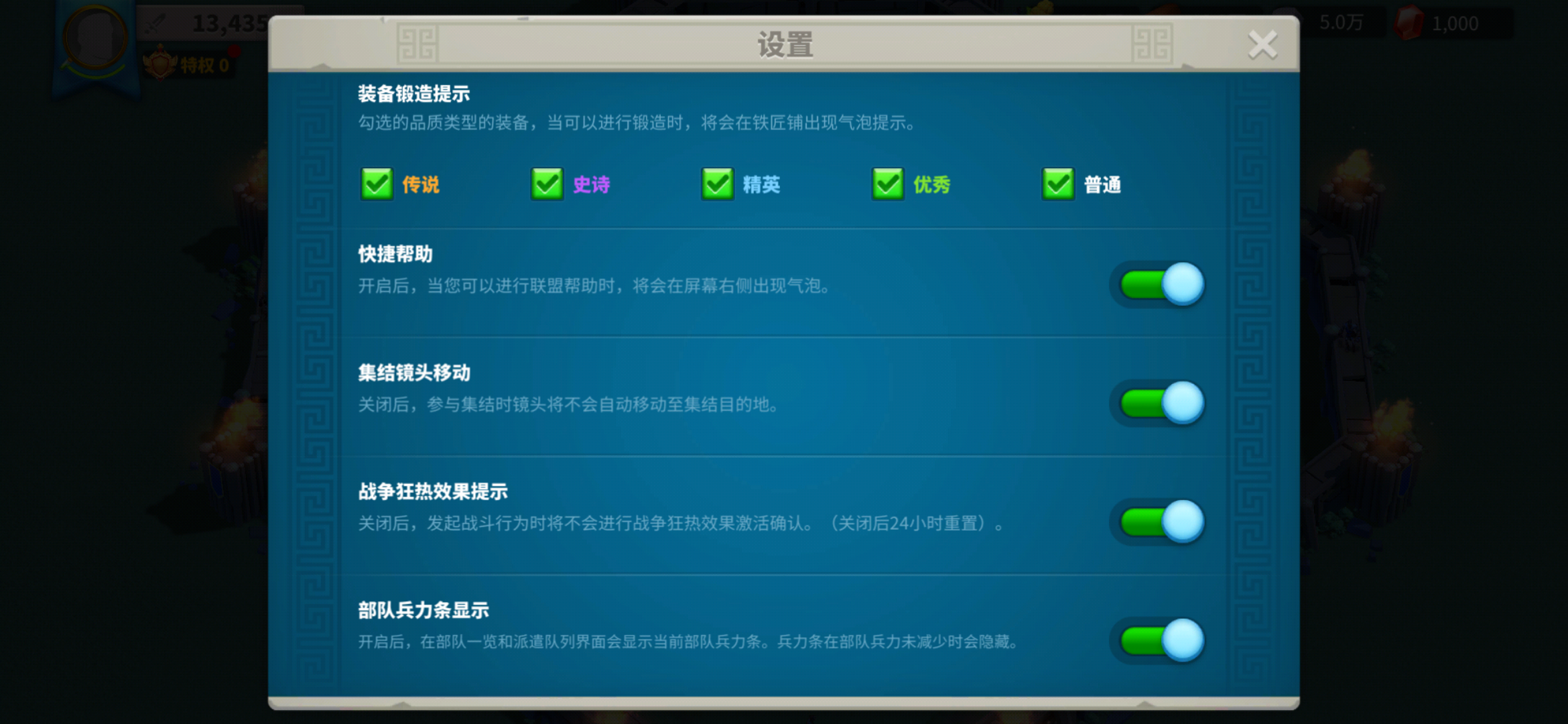 我们可以在设置中的通用设置里找到“快捷帮助“选项,将它打开后,每当有联盟成员需要帮助时,游戏界面的右下角都会显示出一个快捷帮助的按钮,我们只需要轻松点击一下即可帮助当前所有成员。