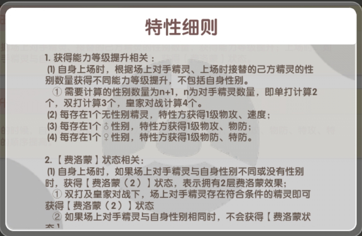 解析:上场时根据对手精灵,接替己方的精灵性别数量,获得能力等级提升