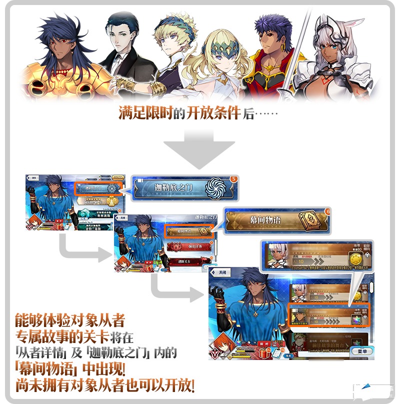 ※未在限时开放期间时间结束之前通关对象从者的「幕间物语」的情况下,在限时开放时间结束后,对象从者的「幕间物语」将变回未开放的状态,开放条件也变回通常的开放条件。