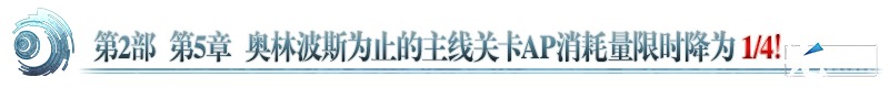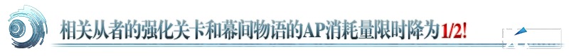※现在,第2部 第6章为止的主线关卡的AP消耗量已经永久降为1/2。因此,活动结束后,对象主线关卡的AP消耗量为1/2。