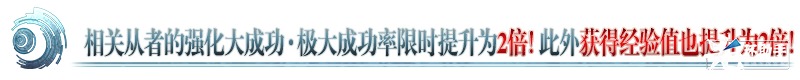 ■相关从者的强化大成功·极大成功率提升为2倍!此外获得经验值也提升为2倍!