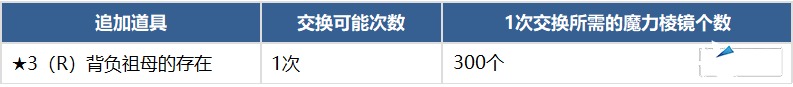 ※「魔力棱镜交换」中追加的「★3(R)背负祖母的存在」为常驻道具,没有交换期限。