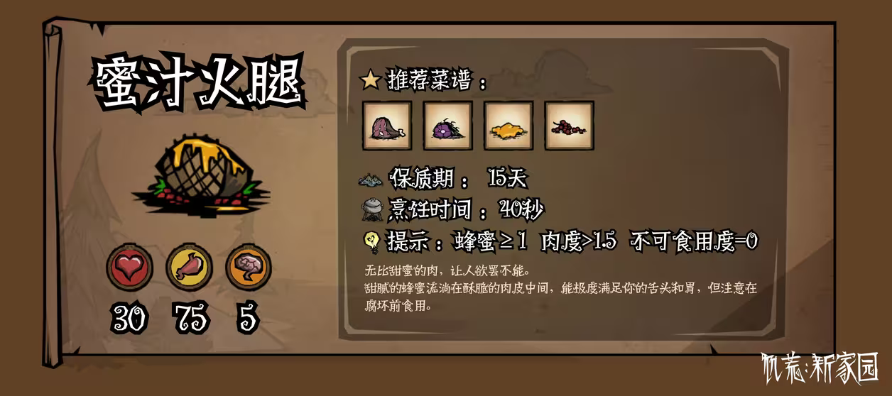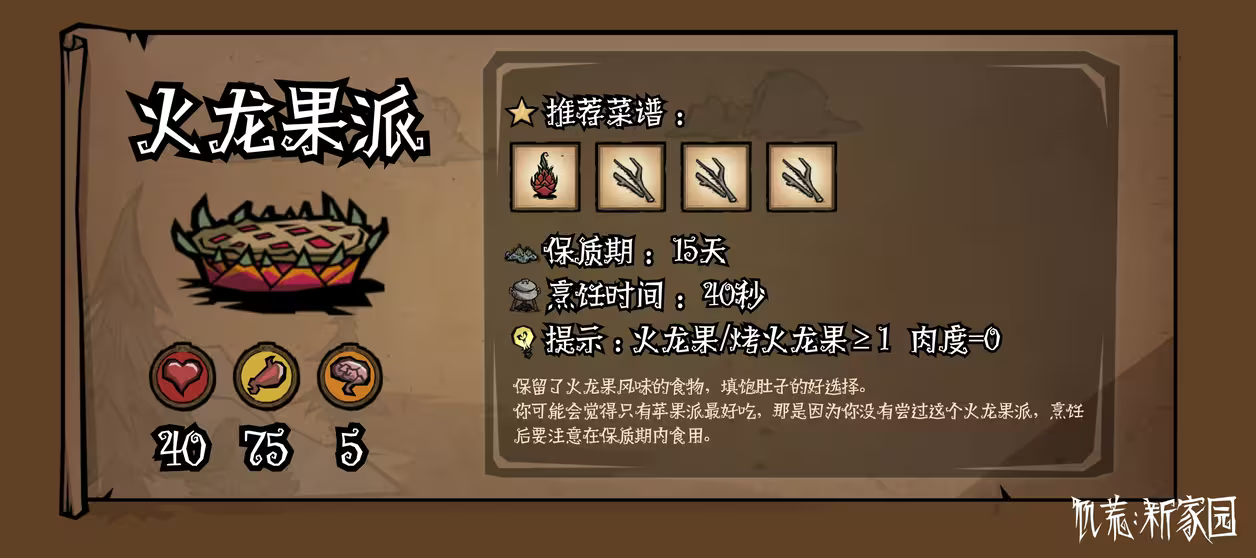 这次的食谱可真是良心推荐了,素材简单又有营养。但是新鲜的东西一定要新鲜吃,不然过了保质期我可不保证还有相同的美味了!别犹豫了,快把背包里的存货利用起来吧!