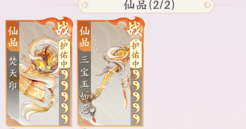 有【紫金玲】和【降魔杵】的玩家可以优先佩戴这2个。如果三宝如意高星就优先佩戴三宝,