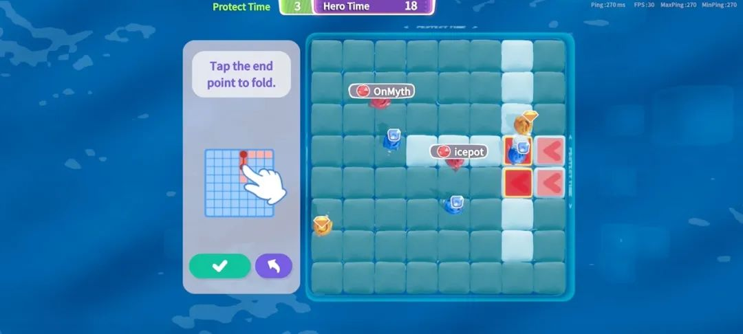 选择成为英雄后,玩家会成为“规则的制定者”,可以利用技能、像上面所描述的那样,让舞台的方块掉落、沉没或是折叠。