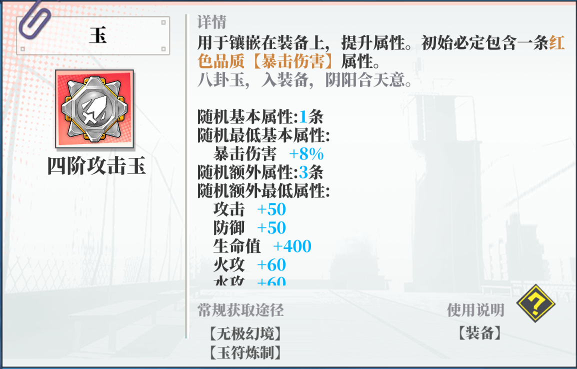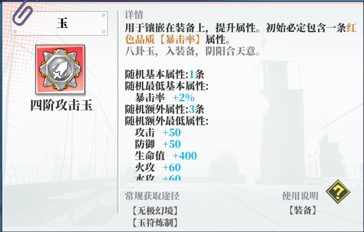玉的方面(其实也没有太多需要介绍)基础攻击不够也可以选择各大属性的攻击基础(其他需要加伤害的加技能的自己看着来)