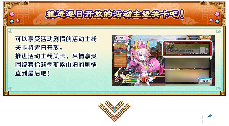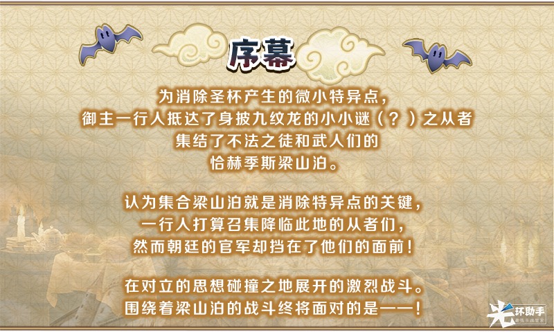 面向已通关限时活动「108人的万圣节·叛乱!~小龙娘水浒演义~」的尾声的御主,我们将开放高难度的「挑战关卡」。
