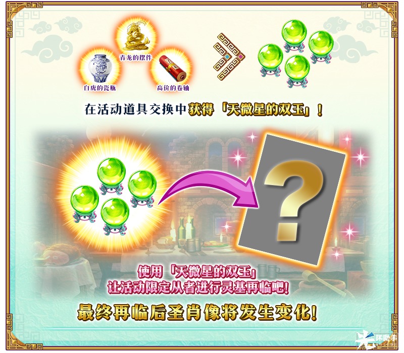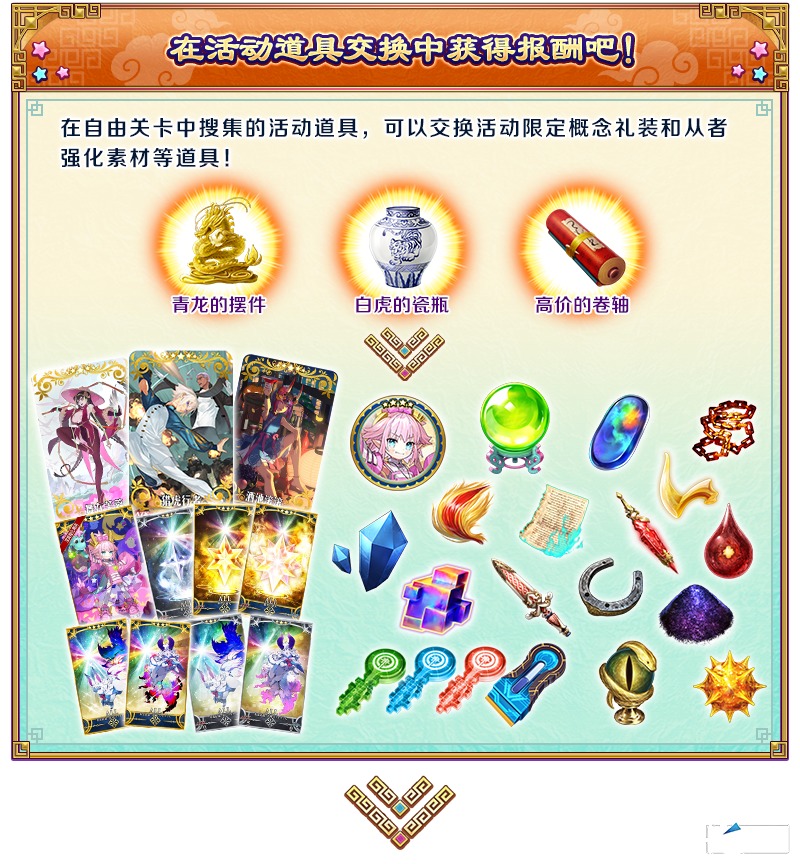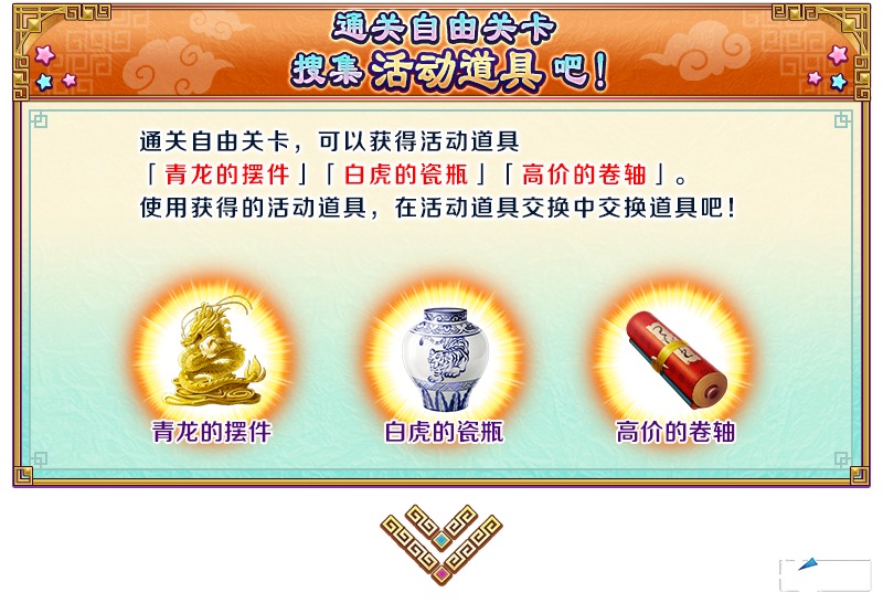 ※活动道具交换期结束后,「青龙的摆件」「白虎的瓷瓶」「高价的卷轴」将被删除。