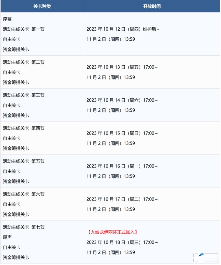 ※本次活动的主线关卡和自由关卡将逐日开放。