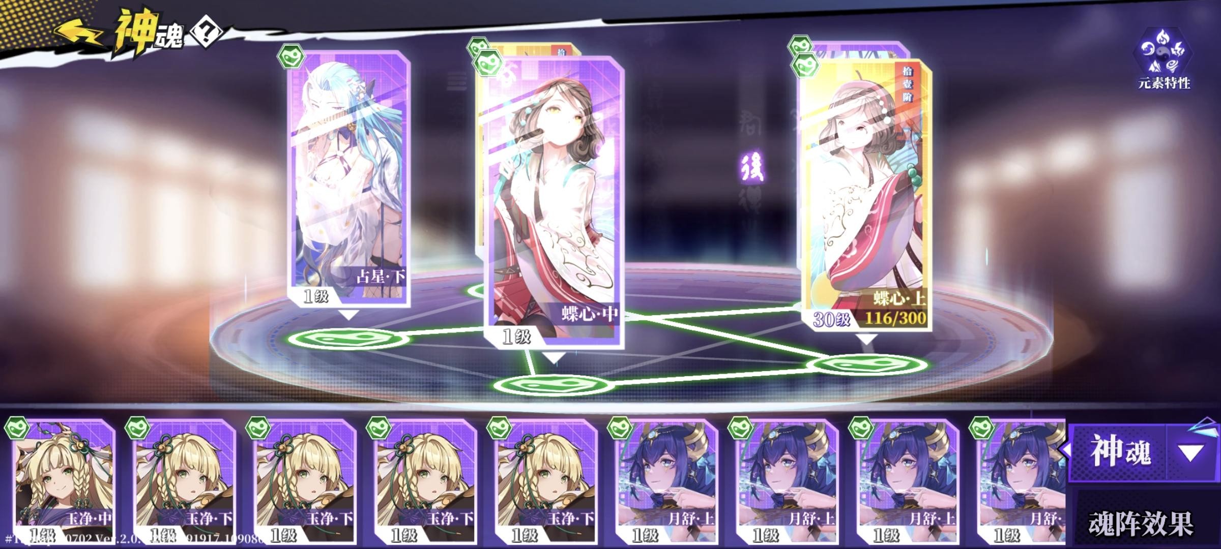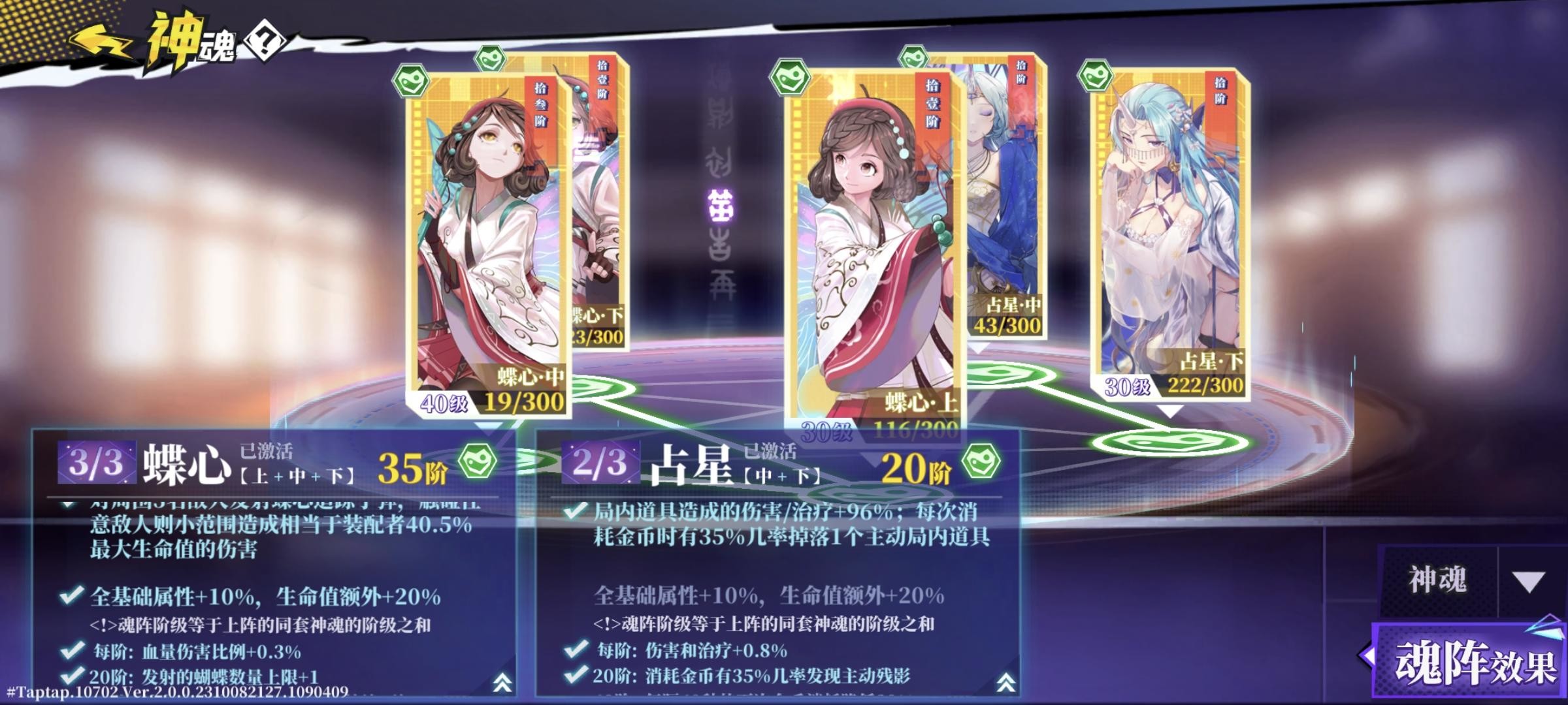 神魂搭配:3蝶心+2占星(中,下),主流。