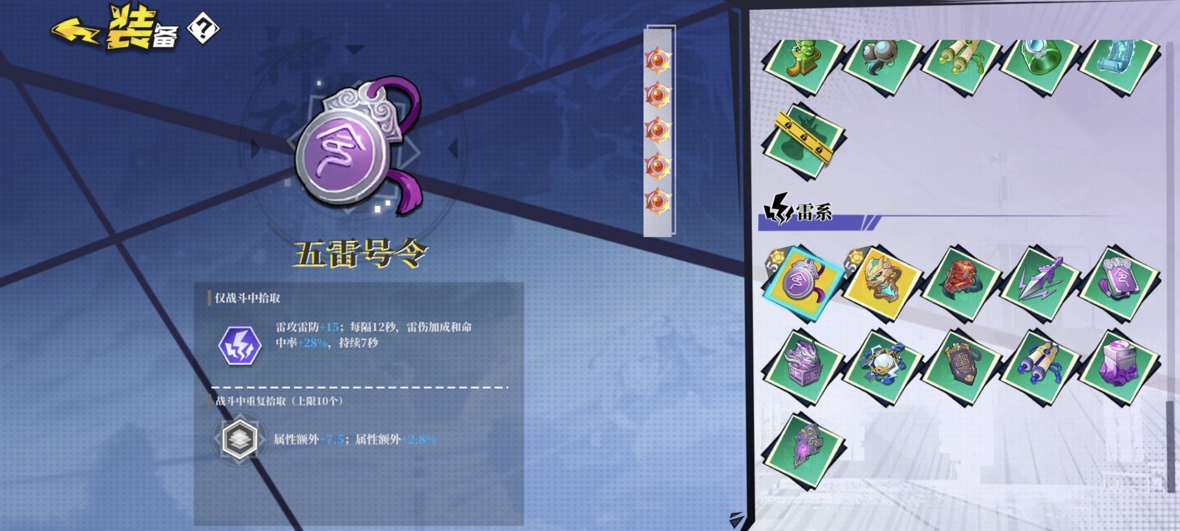 五雷号令:雷系残影,提供命中率,并且稳定保证羽毛叠满5层,不会掉落。