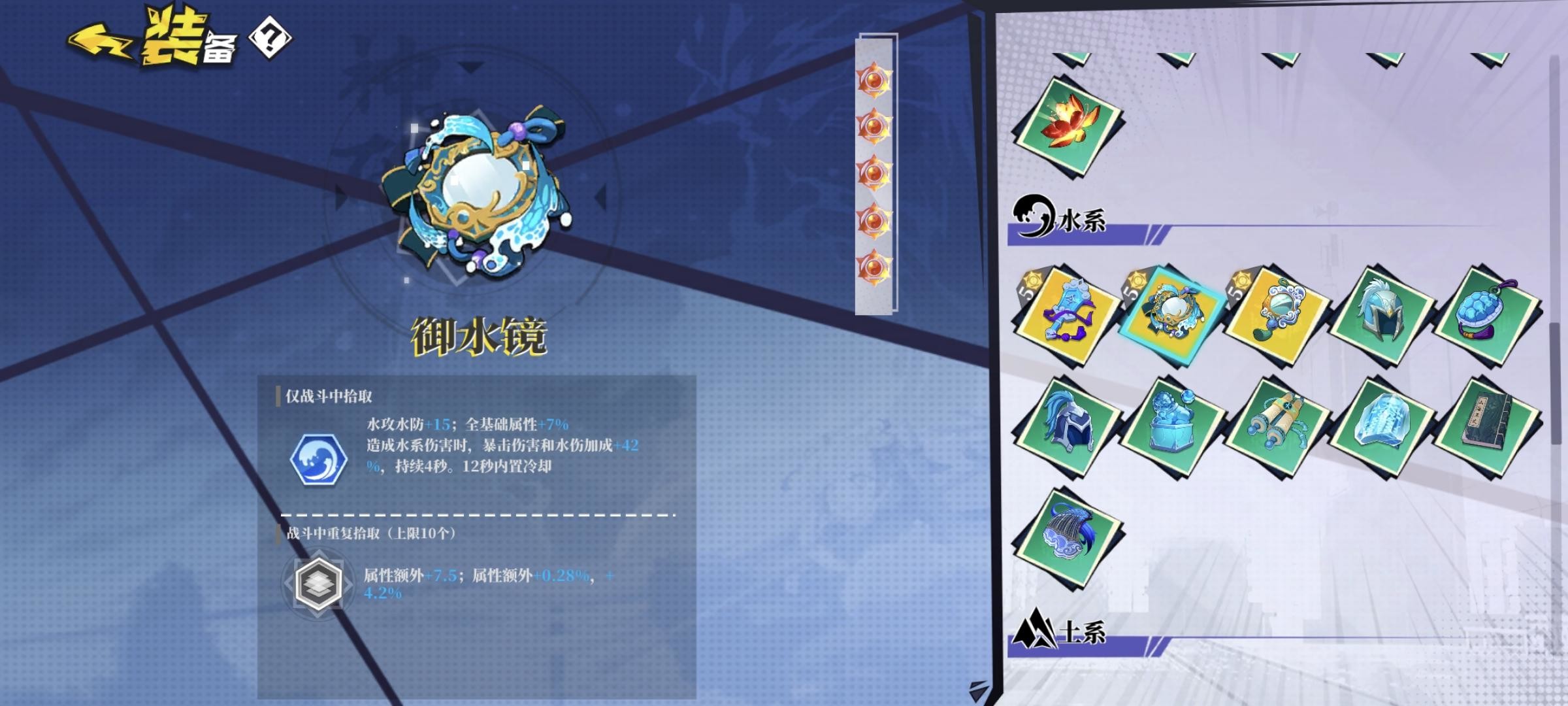水,火,风三镜子,通过增益玉的延长,可以稳定提供,暴击,爆伤以及冷却缩短的buff。