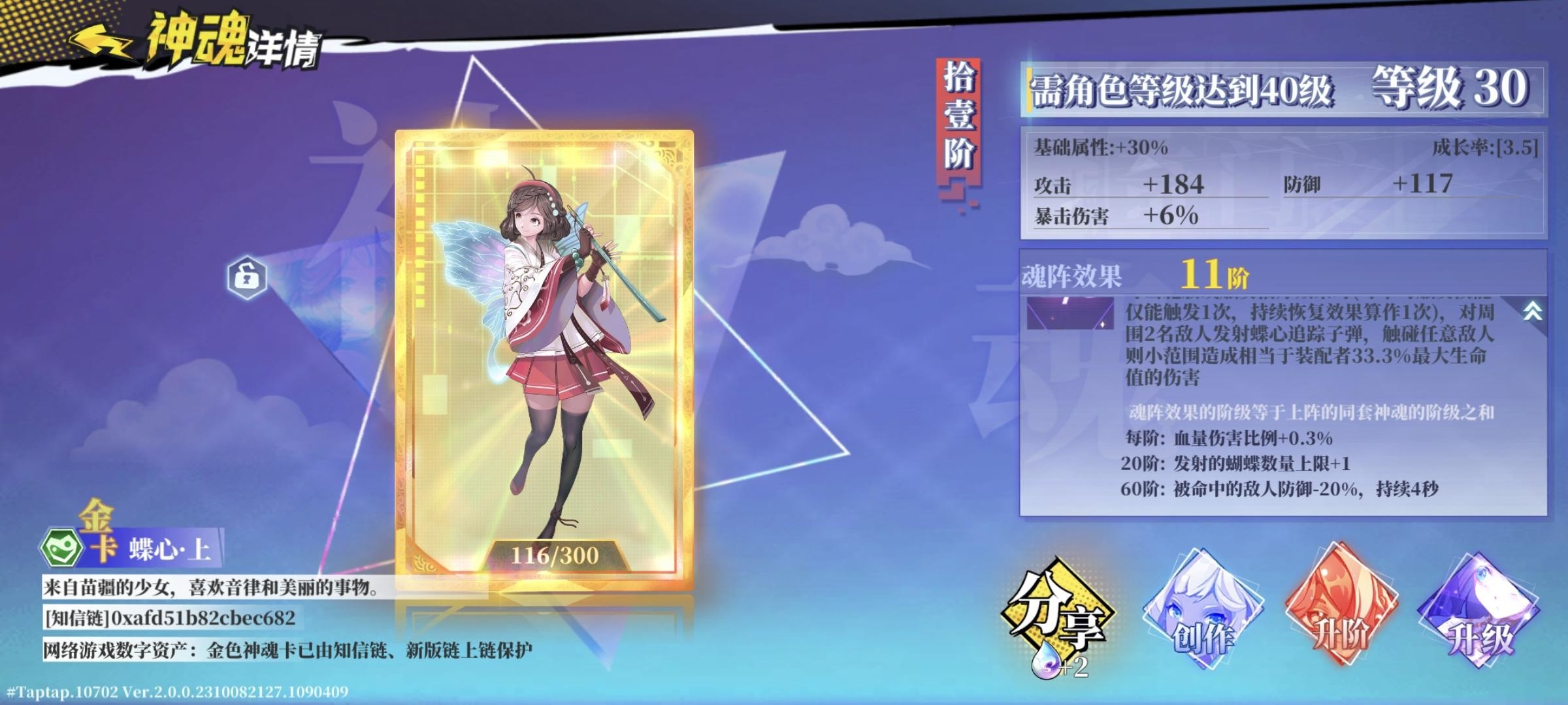 而蝶心能够吃到的加成分别是:暴击,爆伤,伤害加成,神魂加成,生命值面板。