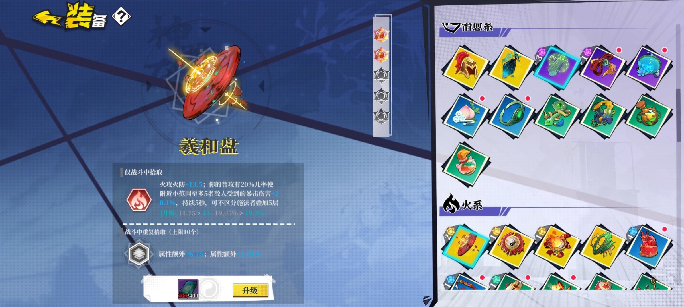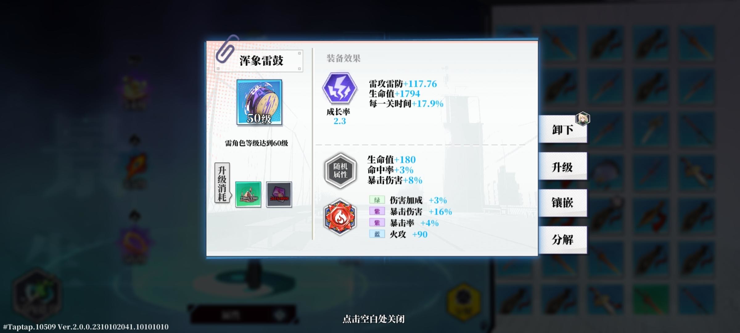 若本流派装备之外,装备栏仍有空余,这里推荐一下浑象雷鼓,可以延长关卡时间。在组队中,也能给小伙伴提供令人安心的输出容量。