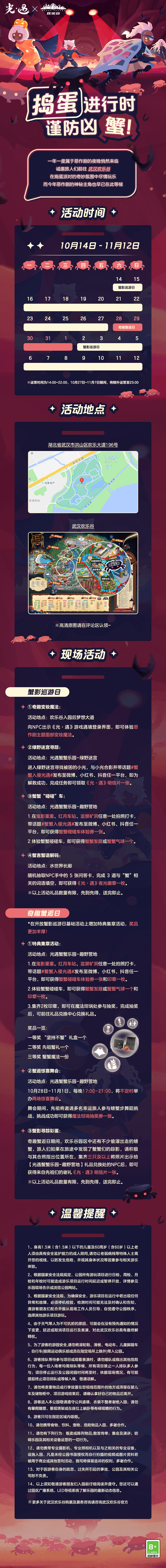 夜幕降临 捣蛋危机 |《光·遇》欢乐谷线下活动即将开启是泽哦发布于 2023-10-12关注层层迷雾之间闪过诡异的红光我们将于2023年10月14日 ~ 11月12日在湖北省武汉欢乐谷与旅人们共同开启怪趣之旅🎃请旅人们仔细阅读这份活动指南期待我们在线下共度捣蛋时刻~