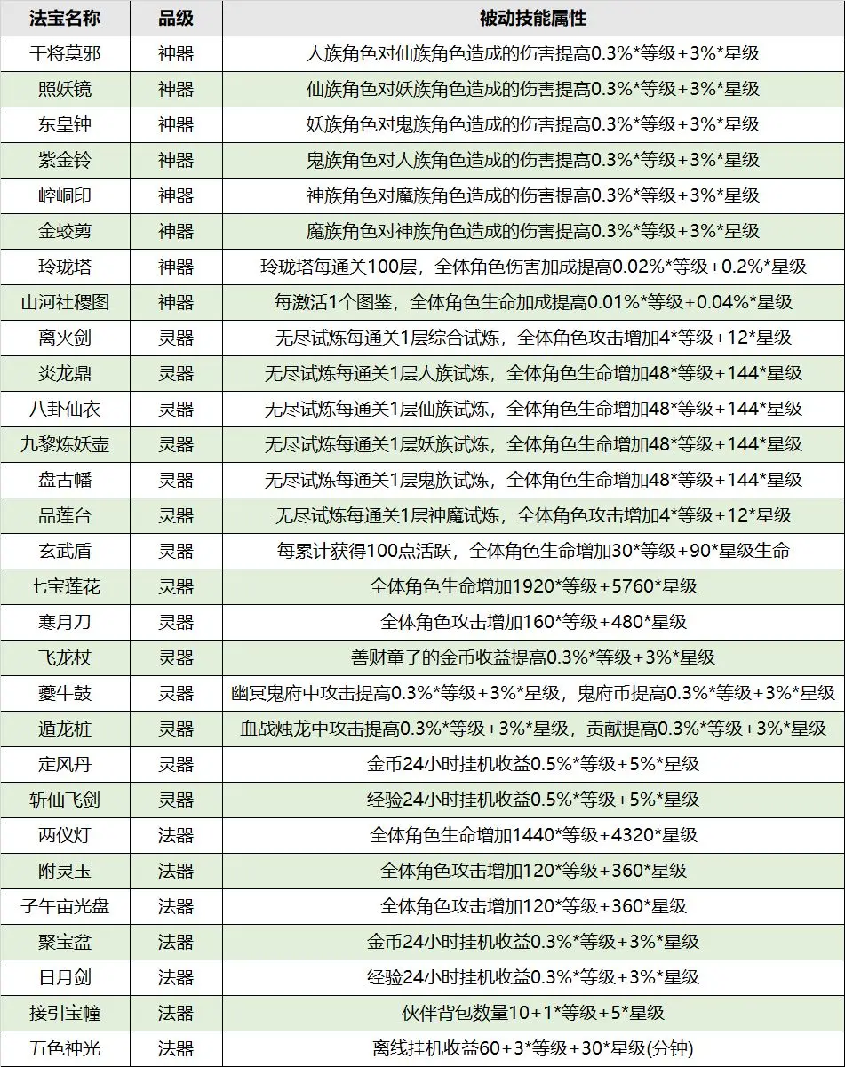 法宝属性一览: