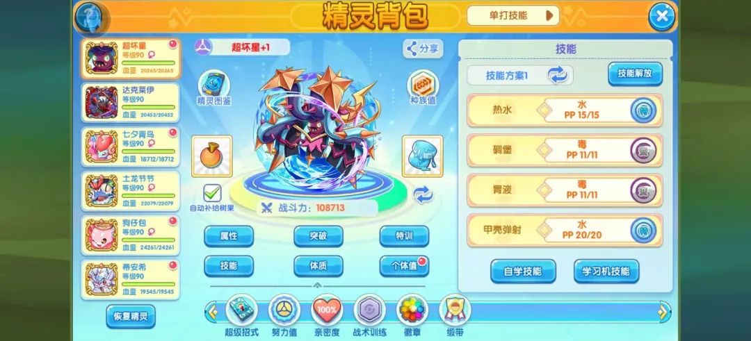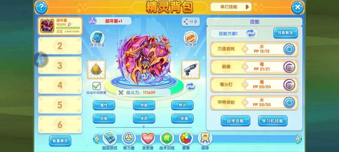 超坏星主要作用携带物天罗地网防止对面中转,天气压制对面的果子方便上毒等,和灵魂毒尖钉,外加万速清钉。