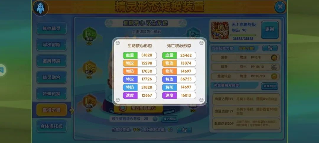 关于新专属基格尔德的点法其实还是挺多的,这里的是微调努力值的。物防特防+22,可以达到血量特防都吃到专属的加成。但是这里的22同样是可以继续调整。也就是物防z可以选择把特防的22给到速度,特防z则是物防给到速度,然后战术加成则是800速。这是其中一个点法。