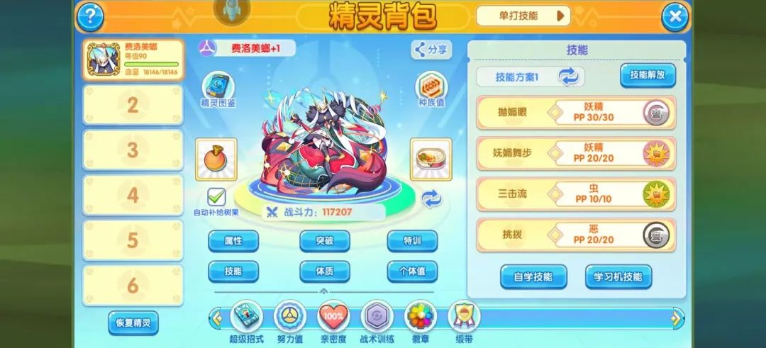 关于费洛美螂这个版本,配招则是偏向于:急速转变+妩媚舞步+百万抛投+替身。这个版本因为定神果的出现,抛媚眼则是少带为好,其主要作用还是为了劝退和锁血抗伤,同时需要小心携带物被打掉,以及密勒顿的火花溅射。