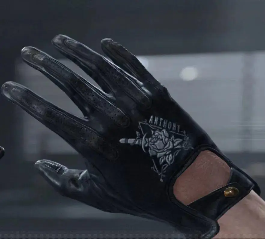 手套的手背部分印有安东尼家徽,玫瑰、匕首与家族名“ANTHONY”构成了一个和谐的三角结构,极具辨识度。