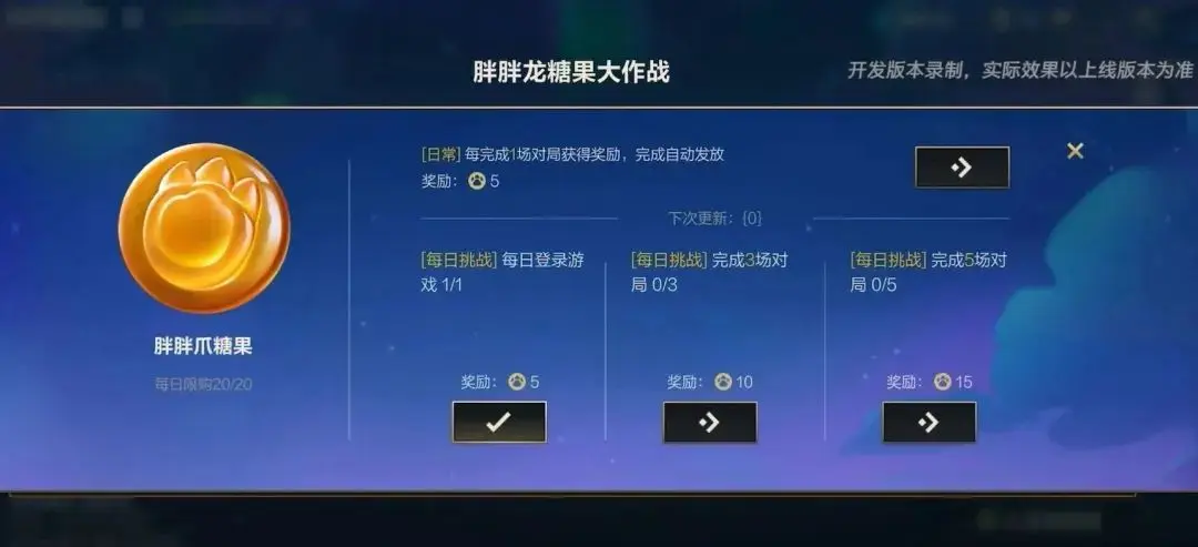 召唤师可通过完成活动期间的任务,每日领取一定数量的糖果。
