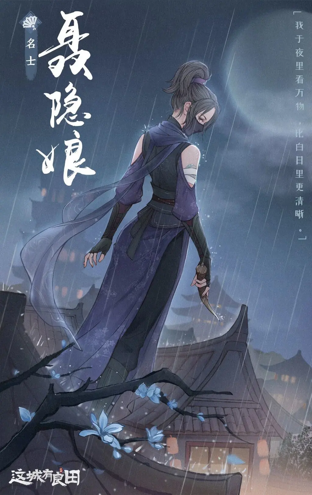 聂姑娘素来以蒙面示人,她那锐利警惕的眼神却能令人局促不安。行走间轻盈灵活的步法与她手中暗藏杀机的羊角匕首都散发着无形威慑力。