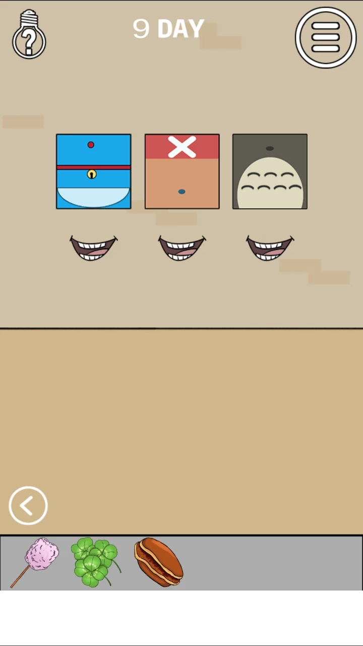还有一些关卡之中存在一些彩蛋,知道相关的知识就可以通关。例如第九关的通关要素就是知道墙上三个动漫人物哆啦A梦、乔巴、龙猫喜欢吃的食物就可以直接获得道具,而不需要玩家进行错误尝试。
