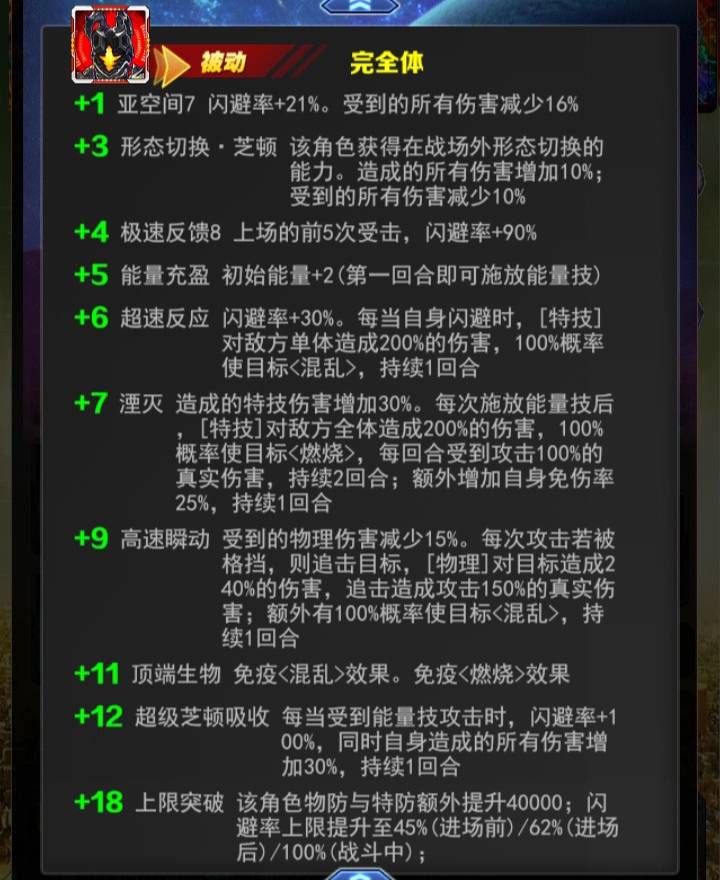 +12 超级芝顿吸收每当受到能量技攻击时,闪避率+100%,同时自身造成的所有伤害增